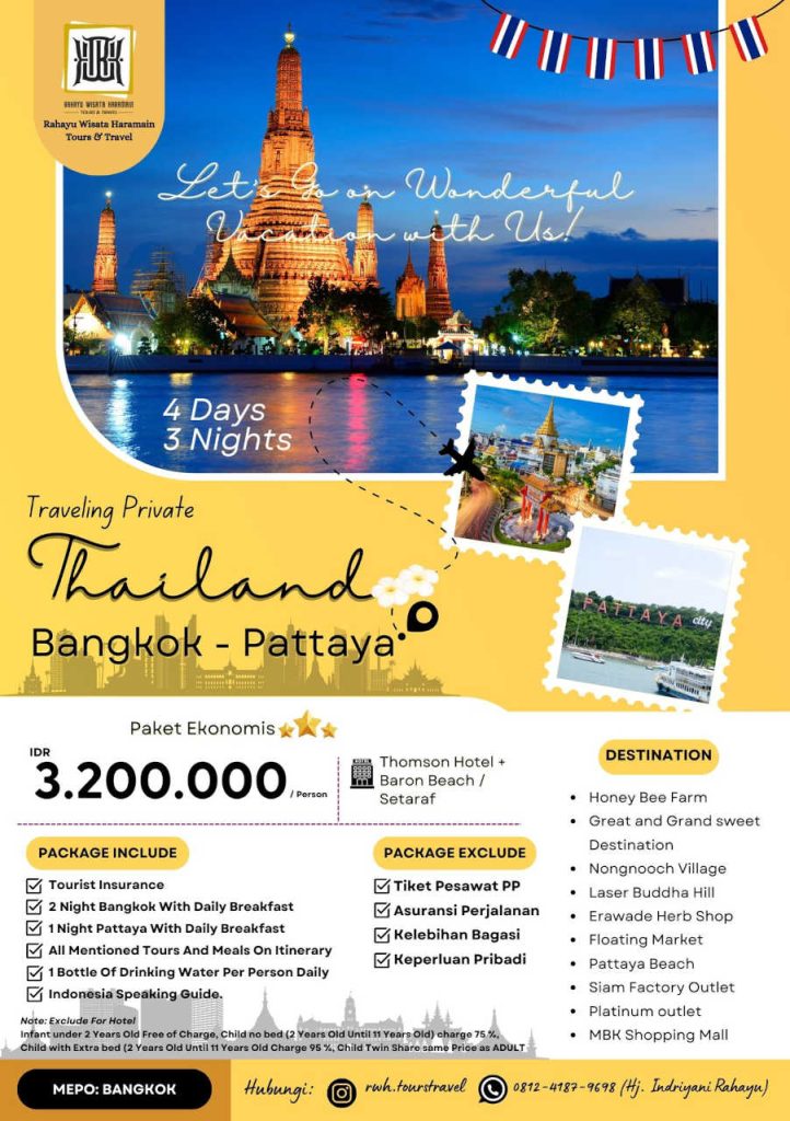 Paket trip Thailand selama 4 hari 3 malam bersama RWH tours & travel dengan berbagai destinasi yang kami tawarkan