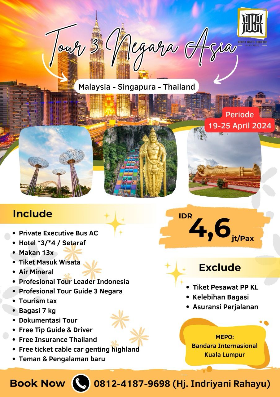 RWH Tour & Travel menawarkan paket trip selama 6 hari di Malaysia, Singapura dan Thailand dengan harga yang terjangkau.